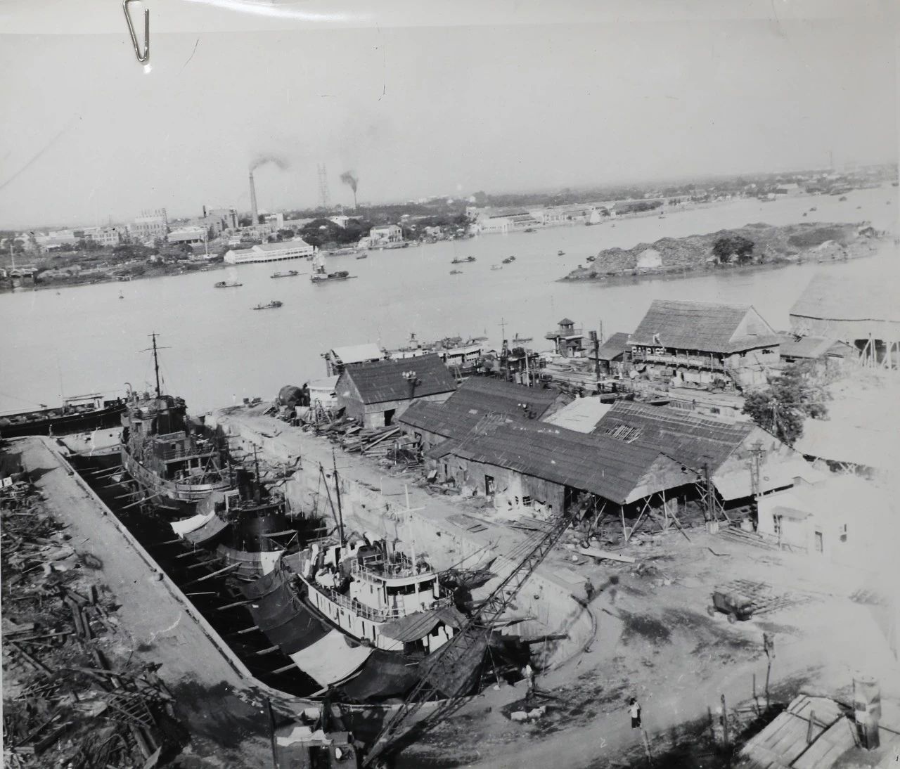 1958年廣州,1958年,廣船國際的前身廣州造船廠的造船塢,圖中的履帶式起重機是廣州造船廠主要的起重設備。