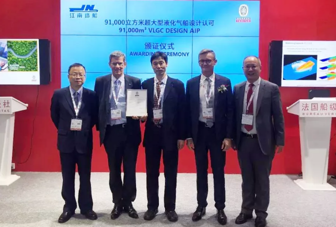 ????海事展首日,中國船舶集團所屬江南造船(集團)有限責任公司新開發的技術“SFONE”獲美國船級社AiP證書,新一代VLGC-PANDA 91T獲得法國船級社的AiP證書。 SFONE(額外的1%裝載率)是一項針對液化氣船裝載的特殊技術。江南已經獲得了中國國家專利局頒發的發明專利證書。新一代VLGC-PANDA 91T在之前已經獲得了ABS和LR的AiP證書,PANDA 91T目前也已獲得三家著名船級社的AiP證書。
