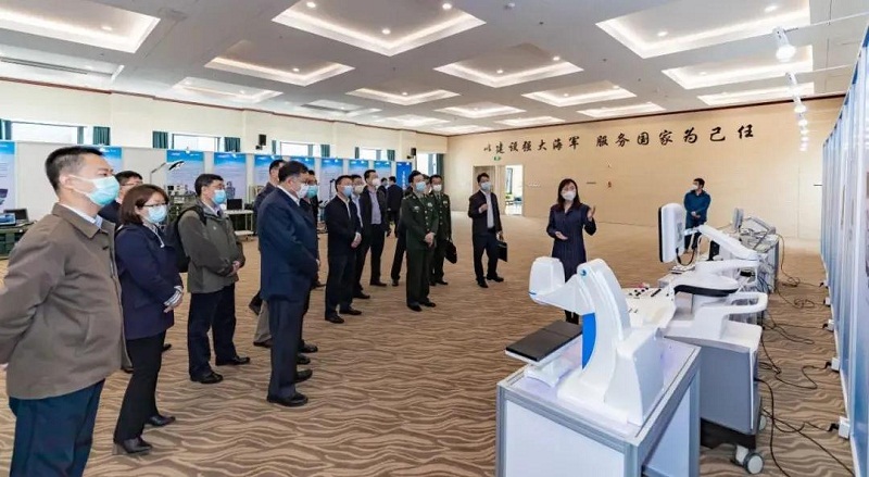 ????莊樹新一行參觀了中國船舶集團骨干衛勤裝備和彩色多普勒超聲診斷儀等醫療器械展示,聽取了中國船舶集團部署推進應急醫療衛勤裝備、智能移動方艙醫院與高端醫療器械領域關鍵核心技術攻關及產業化發展等有關情況匯報。