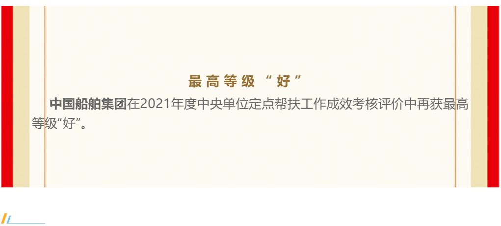 近日,中國船舶集團在2021年度中央單位定點幫扶工作成效考核評價中再獲最高等級“好”。這是自2019年組建成立以來,中國船舶集團連續(xù)第三年獲“好”。