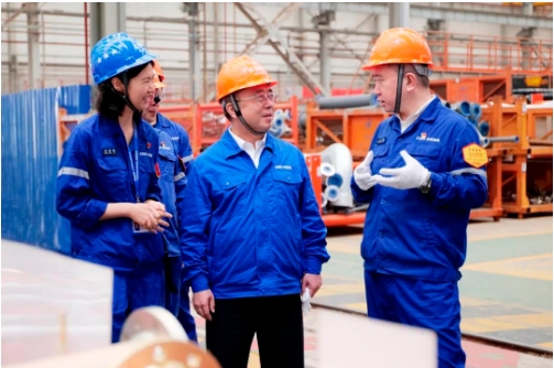 王國強深入科研生產(chǎn)一線,察看了船塢、智能生產(chǎn)線、重點實驗室和產(chǎn)品,進行了安全生產(chǎn)檢查,與一線科研人員、員工進行深入交流,聽取了生產(chǎn)經(jīng)營、科技研發(fā)、人才培養(yǎng)、黨的建設(shè)等情況匯報。