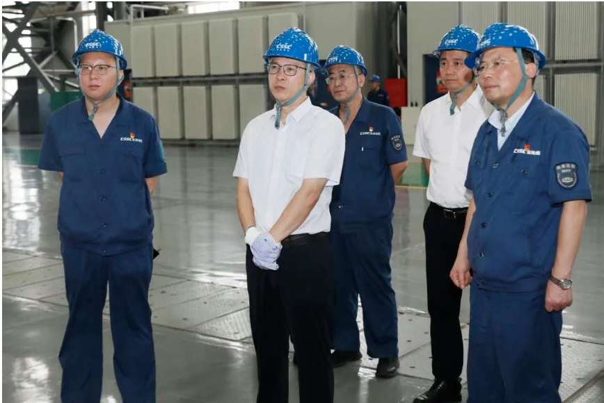 徐鵬深入科研生產一線,調研了相關重點車間及造船、修船碼頭,聽取了相關單位負責人關于生產經營、科技創新、戰略規劃、黨的建設等方面情況匯報,對相關單位改革發展取得的成績表示肯定。