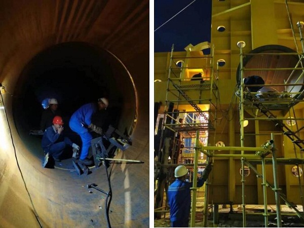 ????趕節(jié)點期間,項目團(tuán)隊主動放棄節(jié)假日休息,每天通宵輪流作業(yè)。一線工班和施工隊人員更是不論白天黑夜,持續(xù)做好吊裝分段,合攏口裝配焊接等工作,為項目開展不斷奮戰(zhàn)。