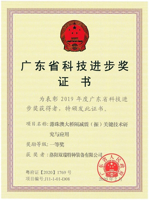 ????雙瑞特裝與港珠澳大橋管理局等9家單位,歷時10年聯(lián)合攻關(guān),創(chuàng)建了超長復(fù)雜跨海橋梁減隔震新體系,成功應(yīng)用于港珠澳大橋,抗震性能從抗7度提高到抗9度,造就了世界超長跨海大橋的減隔震示范工程。