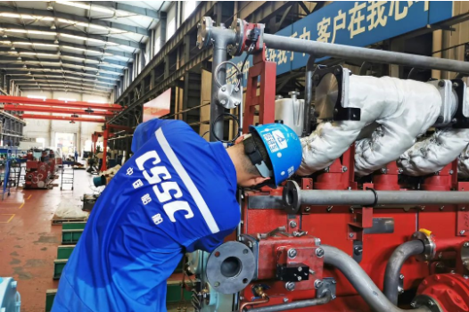 入伏以來,各地持續高溫,中船動力集團柴油機裝配工戰高溫、斗酷暑,堅守生產一線,正在對柴油機進行裝配、調試。