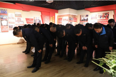 在張進同志先進事跡展覽室里鞠躬默哀