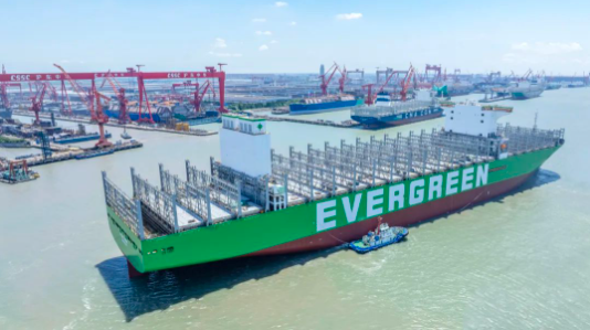 近日,24000TEU系列集裝箱船(H1873A)在中國船舶集團旗下滬東中華長興島西部廠區1號船塢提前11天出塢。在建造團隊努力下,該船出塢完整性達到系列船最佳,為縮短碼頭建造周期創造有利條件。