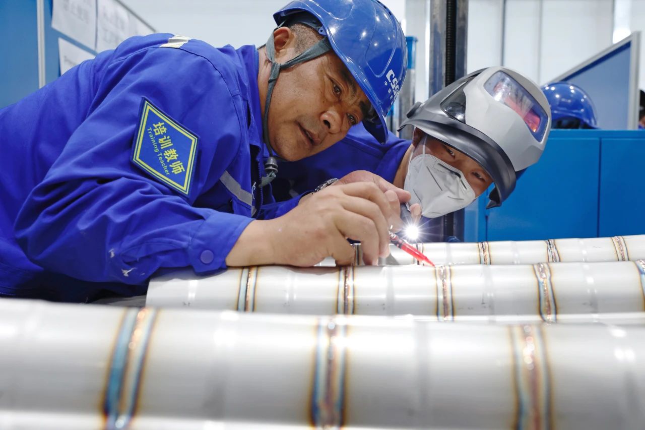 大連造船——LNG綜合培訓中心,施工人員正在進行貨物圍護系統粘連作業和焊接作業培訓。