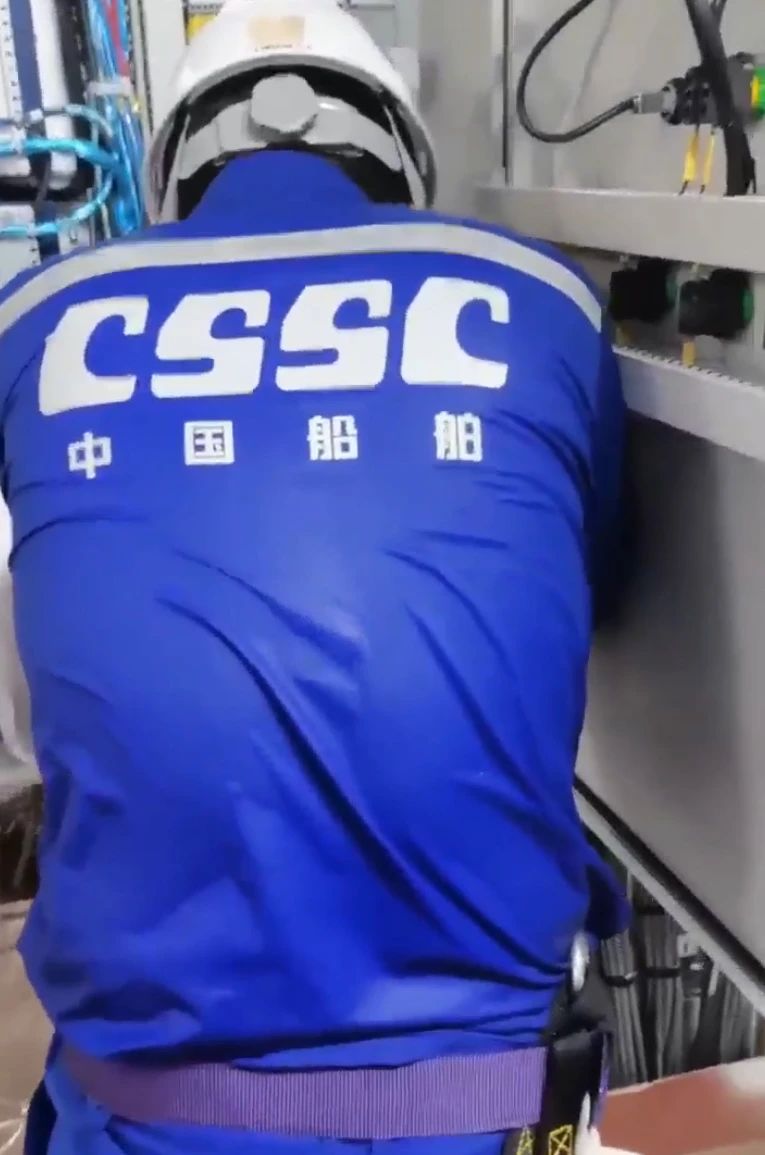 中船動力——子公司中船三井服務工程師徐志杰,冒著酷暑為LNG船試航主機做燃氣調試。