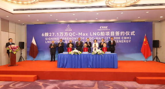 9月9日,三方新簽了6艘全球最大27.1萬立方米超大型LNG船訂單。至此,三方已累計簽訂24艘27.1萬立方米超大型LNG船、12艘17.4萬立方米大型LNG船,以載氣量計,位居全球各船廠之首??ㄋ柲茉词聞諊鴦沾蟪肌⒖ㄋ柲茉纯偛眉媸紫瘓绦泄偎_阿德·謝里達·阿爾卡比,上海市副市長陳杰,中國船舶集團黨組成員、總會計師賈海英等出席簽約儀式。