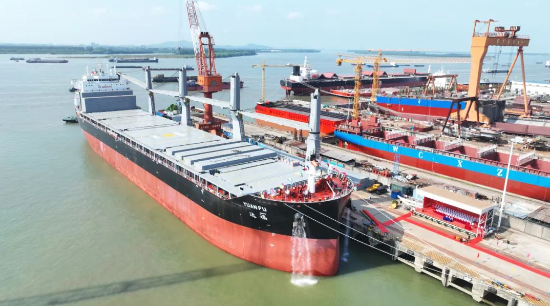 日前,中國(guó)船舶集團(tuán)旗下中船貿(mào)易聯(lián)合北海造船,為達(dá)飛輪船建造的第五艘5500TEU集裝箱船命名交付。