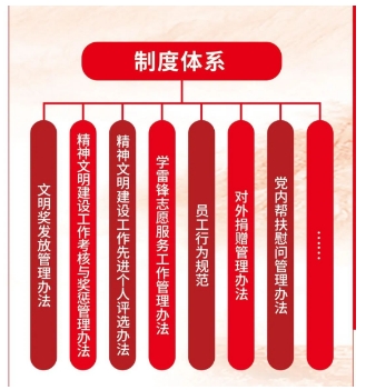 把精神文明建設(shè)作為全面推進(jìn)單位發(fā)展的重要保障,與中心工作同謀劃、同部署、同檢查、同落實(shí),通過(guò)體系化、制度化、規(guī)范化建設(shè),形成“黨委統(tǒng)一領(lǐng)導(dǎo),文明辦歸口管理,職能部門(mén)協(xié)同負(fù)責(zé),全員共同參與”的工作格局。建立法治誠(chéng)信建設(shè)、行為文明規(guī)范、創(chuàng)建考核與評(píng)先等管理辦法,形成科學(xué)完備的制度體系,推動(dòng)創(chuàng)建工作科學(xué)化、制度化、規(guī)范化。