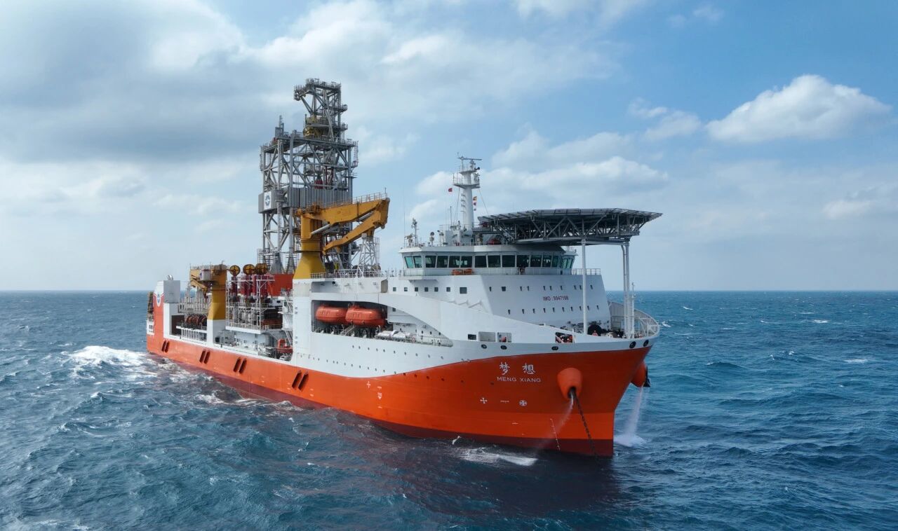 由中國船舶集團有限公司旗下黃埔文沖總成建造、七〇八所研發設計的我國首艘大洋鉆探船“夢想”號,于2024年11月17日正式入列。該船是“十四五”國家重大科技創新工程,最大鉆深11000米,可執行大洋科學鉆探、深海油氣勘探和天然氣水合物勘查試采等任務。