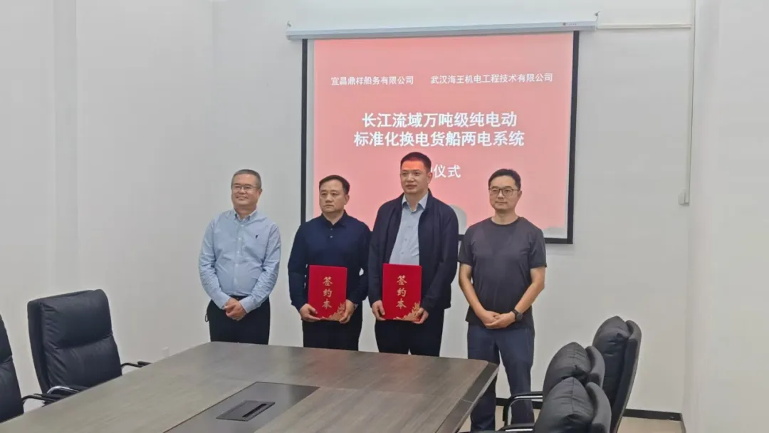 近日,中船集團七一九所旗下武漢海王機電工程技術(shù)有限公司與宜昌鼎祥船務(wù)有限公司達成關(guān)鍵合作,成功簽訂4船(套)長江流域萬噸級電動標(biāo)準(zhǔn)化換電貨船兩電系統(tǒng)和智能系統(tǒng)供應(yīng)合同,標(biāo)志著雙方在綠色智能船舶裝備領(lǐng)域的合作正式落地。