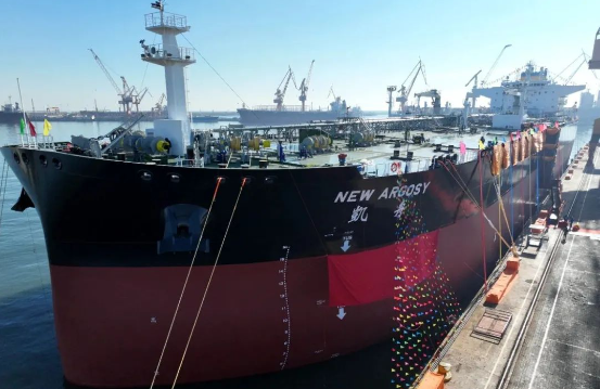 12月9日,中國船舶集團所屬中國重工大連造船為招商輪船建造的11.5萬噸原油船“凱舟”號命名交付。這是大連造船山船重工今年交付的第15艘船舶,標(biāo)志著山船重工超額完成全年交船目標(biāo)任務(wù)。