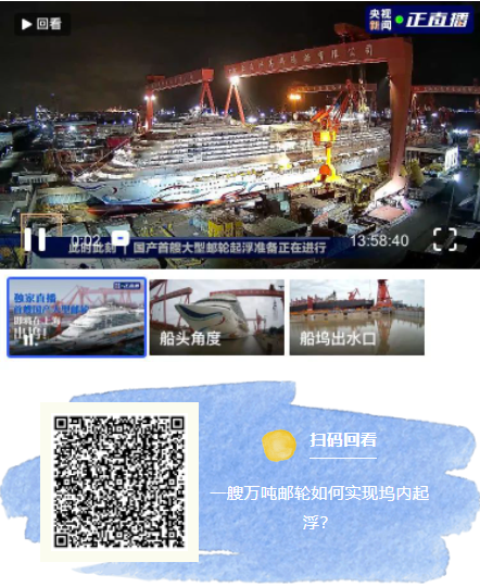 別急,央視新聞還為您準備了近14個小時的超長直播,回看一起見證我國首艘大型郵輪起浮全過程!