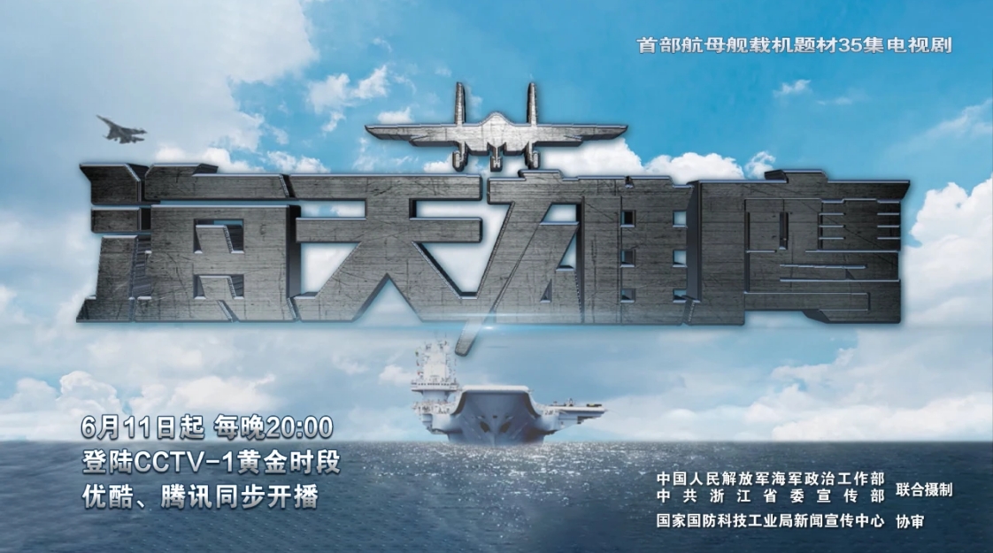 首部航母艦載機題材35集電視劇《海天雄鷹》于今日起每晚20:00登陸CCTV-1黃金時段,優酷、騰訊同步開播。該劇由中國人民解放軍海軍政治工作部、中共浙江省委宣傳部聯合攝制,國家國防科技工業局新聞宣傳中心支持指導。優酷、海天蛟龍影視、拉姆影視等公司出品。朱秀海編劇、劉家成執導,朱亞文、侯勇、李幼斌、杜淳領銜主演,王珞丹特別出演,趙達、郭廣平、童蕾、張瑤特邀主演,以真實歷史為藍本,首次將航母艦載機試飛歷史部分事件及人物搬上熒幕,探秘被譽為“刀尖舞者”的艦載機飛行員的訓練和生活日常,全方位展示了以謝振宇(朱亞文 飾)、秦大地(侯勇 飾)、余濤(杜淳 飾)為代表的頂尖飛行員從遴選、到嚴苛訓練再到著艦起飛等關鍵環節,他們在衣正邦(李幼斌 飾)的帶領下從零開始,以時不我待的使命意識和舍我其誰的精神氣度,突破層層技術壁壘,攻克艦載機著艦和起飛技術這一世界性難題,呈現了中國海軍飛行員攻克航母艦載機技術難關的過程與劍指深藍的決心。同時,首次以電視劇形式反映了航母艦載機研制歷程。