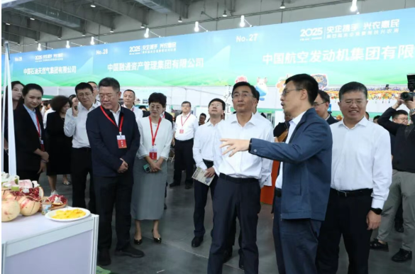 國務院國資委秘書長莊樹新、國務院國資委社會責任局局長李軍、農業農村部區域協作促進司(革命老區工作辦公室)司長(主任)李富君等領導來到中船集團展區,詢問了解集團公司定點幫扶的進展情況及特色農產品相關信息。